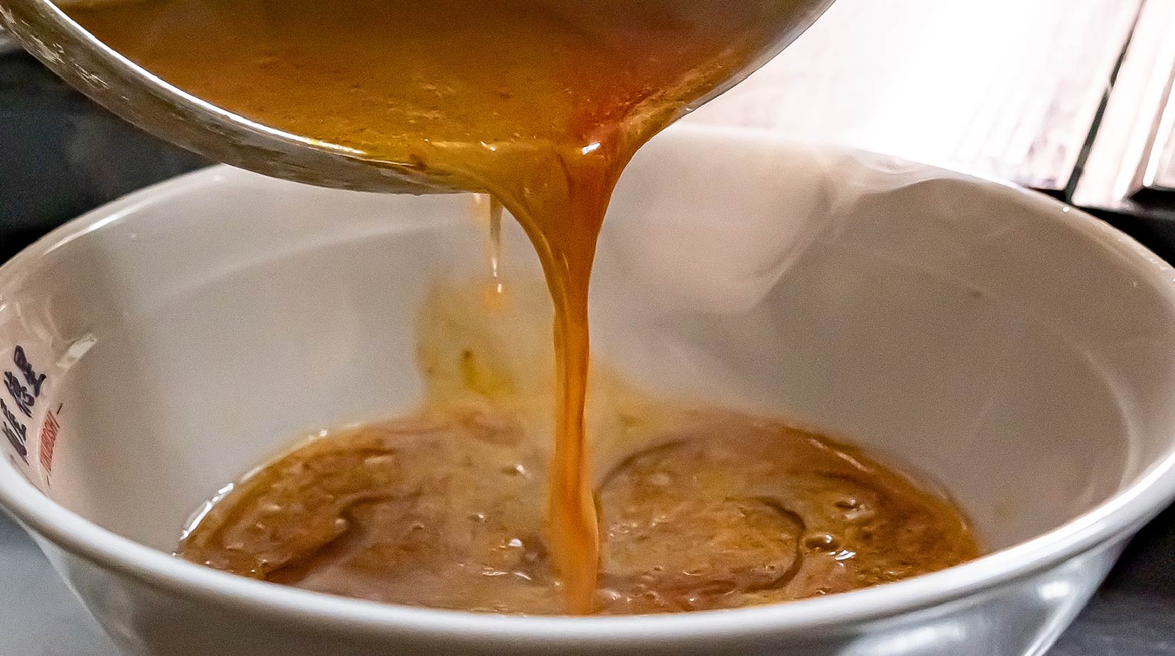 スープの製法にも特長があります。圧力鍋で鶏の旨味を最大限まで引き出して、出来上がったものを一旦冷やします。そしてそれを煮干しや昆布の出汁をまぜてまた冷やします。