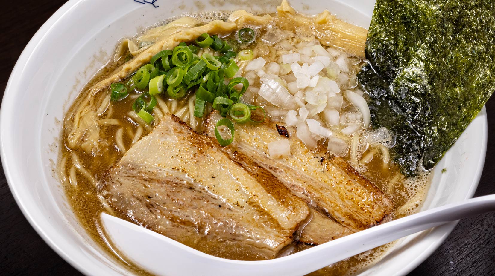 そして炙りチャーシューや特注の麺と絡めたら徳星自慢の特製煮干しラーメンの完成です。
